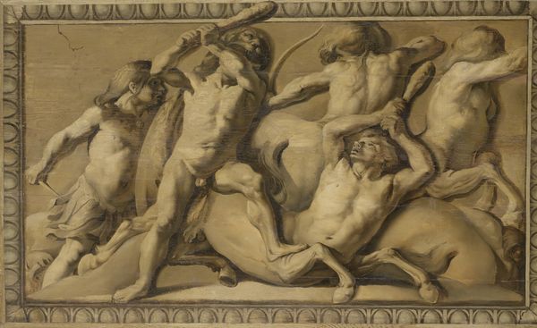 Curator: This is Jean-Auguste-Dominique Ingres’ “Studies for ‘The Martyrdom of Saint Symphorien’ (Saint, Mother, and Proconsul),” located here at the Harvard Art Museums. Editor: It strikes me as a highly theatrical scene, filled with a tension that's both palpable and unsettling, even in this unfinished state. Curator: Indeed. Ingres, deeply embedded in academic tradition, sought to capture historical and religious narratives with an emphasis on idealized forms and dramatic clarity. Editor: I'm particularly drawn to how the composition centers the female figures. There is Saint Symphorien, defiant with arms raised, and a mother who seems to be urging her son toward martyrdom. Curator: Yes, and we can consider how this depiction plays into broader social constructs around gender, sacrifice, and religious devotion within 19th century France. Editor: It’s fascinating to consider Ingres’ meticulous approach, the countless studies and preparatory drawings, each contributing to a final, polished image. Curator: For Ingres, art was a public endeavor, a moral exercise, reflecting the values of its patrons and the state, and it's important to view such historical works through a critical, contemporary lens. Editor: Absolutely, and looking at these "studies," we can think of the social, cultural, and political expectations placed on people, particularly those associated with the church.