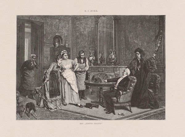 John Singer Sargent made this humorous engraving called 'Music at Home' at an unknown date. It depicts a scene that challenges the conventions of musical refinement in domestic settings. The image, made in the late 19th century, uses visual codes to portray a clash between a "sensitive musical female" and three "near-sighted but very powerful amateur vocalists of the male gender". This gendered dynamic highlights the social expectations placed on women as educators of men, especially in musical settings. In this context, the culture of domestic music-making served as a space for both artistic expression and social negotiation. The humour arises from subverting the idea of harmony and the visual depiction of discord. To better understand this work, we might research the role of gender in late 19th-century social conventions, and domestic musical education.
