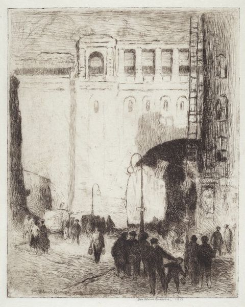 David Young Cameron made this etching of St. George's, Hanover Square, using a metal plate and acid. The process gives us delicate lines, each one bitten into the metal by acid. Look closely, and you will see how the varying depths of these lines create depth and shadow. This wasn't a quick sketch; it required careful planning and skilled execution. The choice of etching is significant. In the late 19th and early 20th centuries, it was a popular medium for depicting urban scenes, connecting the rise of industrial society with a certain nostalgia for traditional craftsmanship. The image suggests the bustling life of London, with the architecture of wealth and power framing the daily lives of its citizens. Cameron's delicate lines remind us that even mass-produced images are rooted in the skilled labor of the artist. It challenges the division between art and craft, between the unique artwork and the reproducible image.