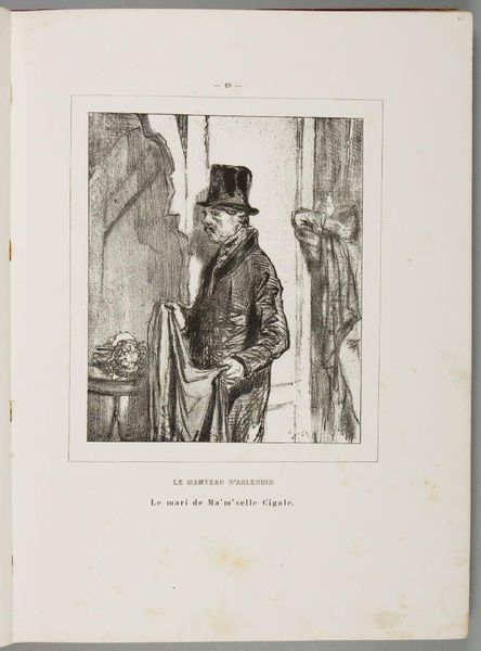 Editor: This drawing, "The Student" by Paul Gavarni, depicts a young man in what appears to be a moment of contemplation. I'm struck by the uncertainty conveyed in his gesture and the title itself. What can you tell me about the social context surrounding this image? Curator: Gavarni was very interested in the social types of his time. This image likely reflects the anxieties surrounding social mobility and the limited opportunities available to young people in 19th-century Paris. The accompanying text asks, "Shall I be a lawyer, or from the Academy, or a court clerk?". It seems the art captures the precarious nature of seeking one’s place in society. Editor: That's fascinating. I hadn't considered the text as integral to understanding the image's intent. I appreciate your insight. Curator: And I've enjoyed considering how Gavarni used satire to comment on the ambitions and frustrations of the era.