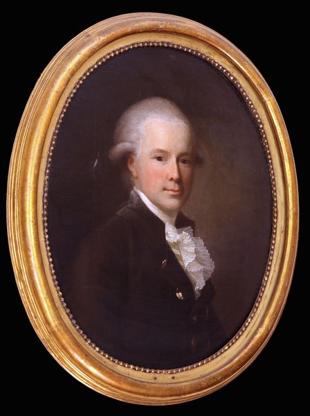 Editor: This is a miniature portrait of George Washington by Philippe Abraham Peticolas. The detail is amazing for such a small piece. What can you tell me about the context in which it was made? Curator: Consider the materials: paint, likely ivory, and the labor involved in its creation. This wasn't mass-produced but a carefully crafted object for a specific, wealthy patron. It speaks to the rise of consumer culture and the desire for personal connection through portraiture. Editor: So, it's less about Washington as a leader and more about the social structures that allowed this kind of art to exist? Curator: Precisely! The artist's skill, the patron's wealth, and the availability of materials all intertwine. It’s a fascinating window into the material conditions of the time. Editor: I never thought about portraiture that way, thanks! Curator: My pleasure! It is important to appreciate all that went into its making.