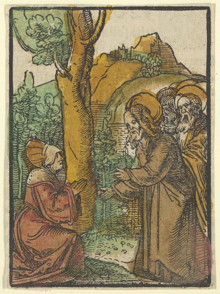 Editor: This is "The Incredulity of Thomas" from Das Plenarium, a woodcut made around 1517 by Hans Schäufelein. It's interesting, kind of raw in its depiction. What strikes me most is the…hesitancy, maybe? Thomas is so unsure. What do you see in this piece? Curator: That hesitancy you mention is powerful, especially when we consider the historical and social context. Here, faith is depicted not as blind acceptance but as a struggle, a very human experience of doubt. How does this contrast with the societal expectations of religious devotion in the 16th century, don't you think? Editor: Absolutely! It makes me think about the Reformation brewing at the time. Questioning authority, demanding proof… Curator: Precisely. Schäufelein's art becomes part of this broader challenge to established power structures. The very act of depicting doubt, particularly within a sacred narrative, could be viewed as subversive. Do you see any specific artistic choices that reinforce this sense of unease or challenge? Editor: The expressions are definitely intense, especially on the faces of the onlookers. And the crude lines of the woodcut itself. It feels… less polished than other religious art from the period. Curator: That rawness, that rejection of idealized forms, connects to broader trends of the time. It can be related to the art and social commentary and reflects the tensions that exist around faith, doubt, and social upheaval. Perhaps a conscious choice to align the work with those experiencing genuine uncertainty. Editor: That's a great way to look at it. I never thought about religious art as something that could be…activist, I suppose. Curator: Art is never neutral, and these choices in style and content reveal the complex, ever-shifting landscape of identity and power during a pivotal point in history. Considering context is crucial to a deeper understanding. Editor: I learned so much about how art, even religious art, is entangled with history and the questioning of power structures. Curator: And that’s why thinking about the world around it and who it affects makes all the difference.