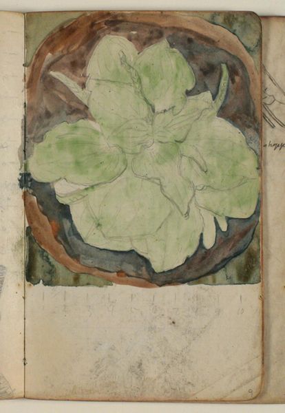 Curator: Welcome. Today, we’re exploring "Plantestudier," a series of plant studies created between 1906 and 1910 by Niels Larsen Stevns. They are a delightful array of drawings rendered with watercolor and colored pencil on paper, found here at the SMK. Editor: There's a raw immediacy that’s very appealing. You can almost feel the artist’s hand moving across the page. The washes of watercolor give it a hazy, dreamlike quality, while other parts are just simple, almost clinical, pencil outlines. Curator: Absolutely. These studies give us insights into the art academies of the early twentieth century and into Stevns' broader engagement with organic forms. He used the natural world, often flowers and vegetation, as springboards for Symbolist and spiritual reflections. Editor: It makes me think about the scientific illustration of the time and wonder about the tension, if any, between art and science during that period. Was Stevns trying to categorize nature, or find something more expressive within it? I find myself reflecting on this plant form as a symbol for the organic relationship between people, environment and creativity. Curator: That tension was indeed present. While he aimed for a scientific accuracy in botanical form, he certainly infused his observations with personal expression. He was actively engaged in redefining the role of religious art, working outside the constraints of the church. For Stevns the organic and detailed plant-life would often serve as a spiritual conduit. Editor: The delicate use of color, particularly that soft yellow behind the blooming portion, strikes me. It’s not quite naturalistic, and yet it evokes a strong sense of warmth and light. How might the impressionistic techniques have factored into representing a shift in environmental attitudes or an awareness towards land? Curator: Impressionism freed artists from strict representational accuracy, so it aligns with that more emotionally-charged experience of nature, allowing him to capture not just what he saw, but how he felt. In a time of increasing industrialization and, by extension, detachment from natural systems, a closer artistic inspection into flora would be particularly poignant. Editor: I see this dialogue between feeling and structure mirrored even within the composition. Some parts have the free and flowing watercolors while other areas remain simple outlined structure. Thank you for offering context to this work and providing lenses to explore these botanical studies! Curator: My pleasure! By considering the historical moment and artistic currents, we can start to unpack its significance today, so that we can appreciate its nuanced story within art history.