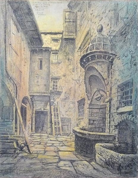 Fernand Combes captured this view of Fontenay Aux Roses with an evocative interplay of light and shadow using graphite and chalk. Here, the tight, narrow perspective draws us into the heart of the old town, almost like a stage. A lone figure walks towards us beneath an archway; their anonymity turns them into a representation of all wanderers and travelers. The figure's presence calls to mind the flâneur, or stroller, a symbol of modernity in nineteenth-century art and literature who wanders city streets to experience and understand the urban landscape. Consider how such a figure, though contemporary, echoes the ancient archetype of the traveler—Odysseus, perhaps—forever seeking home but constantly transformed by their journeys. The image stirs a potent emotional response, touching upon our collective subconscious fascination with journey, discovery, and the human spirit's enduring quest. It reflects a timeless narrative, resurfacing through generations in ever-evolving forms.
