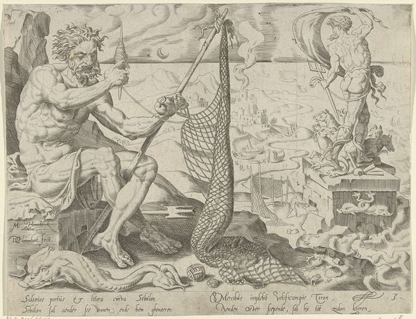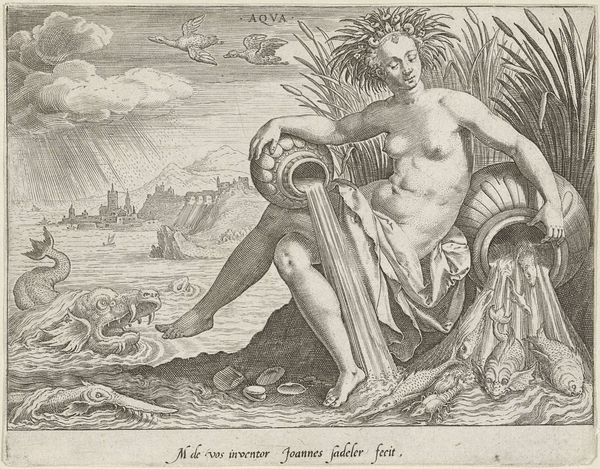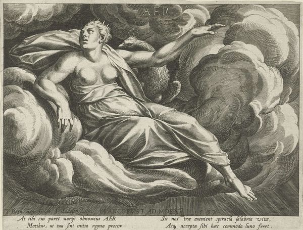 This engraving, "Lucht" or "Air", was made around 1600 by Johann Sadeler, using a technique that was central to the distribution of imagery at that time. Engraving is an intaglio process, meaning that the image is incised into a metal plate, in this case copper, using a tool called a burin. The lines are then filled with ink, and the plate is pressed onto paper. Look closely, and you'll see the characteristic crisp lines that define the forms. The engraving process allowed for the relatively efficient reproduction of images, making art accessible to a wider audience. It's important to remember that prints like these were not just aesthetic objects, but also a form of mass communication. The skilled labor and techniques required highlights the intersection of craft and early capitalism, facilitating the spread of knowledge and artistic ideas across Europe. So, when we look at this print, we're seeing the product of a sophisticated material culture.