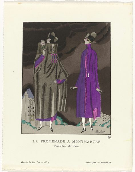 George Barbier made this pochoir print of evening attire, sometime around the early 1920’s. The colour palette is muted, restrained, almost melancholic with a gentle approach to mark making. Look at the texture of the night sky, created with tiny, precisely placed dots of white. See how it contrasts with the flat, velvety black behind. This creates a sense of depth, of looking into the void. My eyes are drawn to the figure in the cloak, or is it a cape? It has a kind of regal quality, but also feels a bit…awkward, as though the wearer is unsure of its weight. The folds in the fabric are rendered with such care, they have a sculptural quality. They remind me of the way an artist can obsess over the fall of light on a figure in a painting, it’s that careful. Barbier, with his background as an illustrator, shares a sensibility with Erté, in his focus on form and elegance. I think you could also see a through line to someone like Christian Berard, another artist fascinated by fashion. It’s all part of an ongoing conversation.