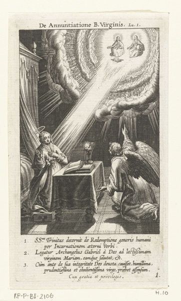 This engraving, "Catharina wordt door twee engelen de trap opgedragen," was made by Cornelis Galle I in the early 17th century. It’s a great example of how graphic art at this time relied on skill and exactitude. The key is the process of intaglio – Galle would have used a tool called a burin to cut lines into a copper plate. These lines hold ink, and when the plate is pressed to paper, the image appears. The precision required is remarkable, especially considering the small scale of this print. Look closely, and you can see how the varying densities of lines create shading and volume, giving the scene its depth. Prints like this were a crucial means of disseminating images and ideas. They were relatively affordable, and allowed for the widespread distribution of religious and allegorical scenes. So, while this may seem like a straightforward devotional image, it's also a testament to the power of the printing press as a technology, able to convey meaning to a broad audience.