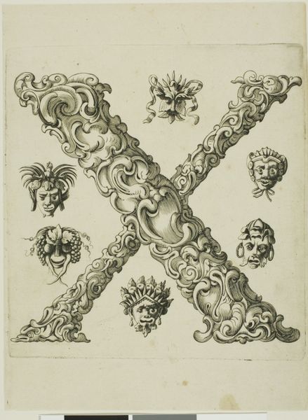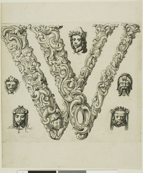 Peter Aubry's "Letter H" is a drawing whose exact date is unknown, but likely created in the 17th Century. The letter is rendered as a complex, almost baroque structure, replete with swirling, organic forms that suggest both architectural elements and natural growth. Note how the artist uses line and shadow to create a sense of depth and volume. This gives the letter a three-dimensional quality, as if it is emerging from the page. Scattered across the letter's framework are grotesque masks and faces, each with distinct expressions. These elements add a layer of theatricality. The masks destabilize the letter's function as a mere symbol, transforming it into a dynamic and expressive form. This approach reflects the period's interest in ornamentation and the grotesque, challenging conventional notions of beauty and order. The drawing pushes the boundaries of typographical design by infusing it with artistic expression. It invites us to consider how meaning is constructed through form and decoration.