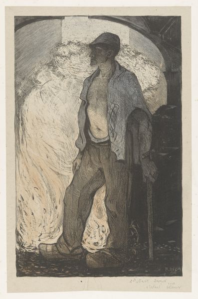Richard Nicolaüs Roland Holst made "Arbeider bij een vuur 2," or, "Worker by a fire 2," with etching. You know, the magic of etching is that it allows you to build up the image, line by line, mark by mark. And here, the flickering light of the fire, it's not just illumination; it's almost a character in itself, drawn with these frantic, scribbly lines. The worker emerges from this glowing halo. Look at the cross-hatching on his clothes, this careful layering that gives his figure weight and form. The way Holst uses shadow - it's like the darkness is breathing, alive. It’s like he's asking us to consider how labor and industry shape not just the physical world but our souls, too. This piece reminds me a little of Käthe Kollwitz, that same commitment to showing the hard, unglamorous side of life. Art isn't just about pretty pictures; it's about looking at the world, in all its messy, complicated beauty.