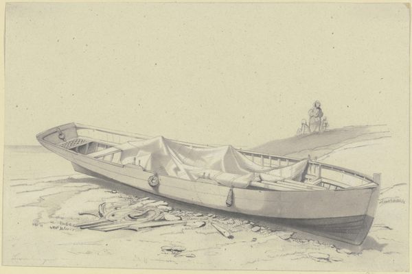 Hendrik Abraham Klinkhamer made this pencil drawing of a ‘Palingschuit’, or eel barge, sometime in the mid-19th century. With its flat bottom and shallow draft, the ‘Palingschuit’ was ideally suited for navigating the shallow waters of the Dutch Zuyder Zee, today known as the IJsselmeer. These boats were essential for transporting live eels to the markets of London, a trade that thrived due to the high demand for this delicacy in Victorian England. Eel barges like this one represent a fascinating intersection of local industry and international trade. They reflect the ingenuity of Dutch boat builders in adapting to their unique environment, as well as the complex economic ties that linked the Netherlands to the broader world. To fully understand this drawing, one might consult maritime histories, trade records, and local archives. By examining such resources, we can appreciate how artworks like this offer us a glimpse into a specific time and place, shaped by distinct social, economic, and environmental factors.