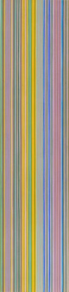 Bridget Riley’s ‘Achaean’ is a vibrant exploration of color and form, carefully constructed from stripes of varying widths and hues, on canvas. Riley's process involves meticulous planning and execution. She often begins with small, hand-painted studies, methodically mapping out the color relationships and spatial rhythms before scaling up to the final canvas. This approach, reminiscent of industrial design, emphasizes precision and control, akin to the work of a skilled craftsman. The optical effects in 'Achaean' are created through the interaction of colors. Riley's keen understanding of perception allows her to manipulate the viewer's experience, creating a sense of movement and depth. This blurring of boundaries between the artwork and the viewer aligns Riley’s practice with traditions of visual experimentation. The systematic method allows a sense of objectivity, almost like a factory production line, whilst engaging with color theory and perception. 'Achaean' challenges traditional distinctions between fine art and craft. By emphasizing the importance of material, making, and perception, Riley invites us to reconsider how we understand the full meaning of an artwork.