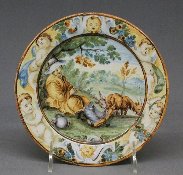 This is a maiolica dish depicting Jacob's Dream, made by Orazio Fontana in Italy during the 16th century. The scene represents a story from the Book of Genesis, where Jacob dreams of a ladder reaching to heaven, with angels ascending and descending. These pieces were luxury goods, made for the elite, reflecting the social status of the owner, but also the cultural values of the time. The inclusion of religious scenes on domestic objects suggests the integration of faith into daily life. Renaissance Italy was deeply religious, and the Church was a major patron of the arts. Works such as this one would comment on the period's institutional relationship with the arts, and religious culture. To truly understand this artwork, one might explore period documents, theological texts, and studies of Italian Renaissance society. The meaning of art is always contingent on its social and institutional context.