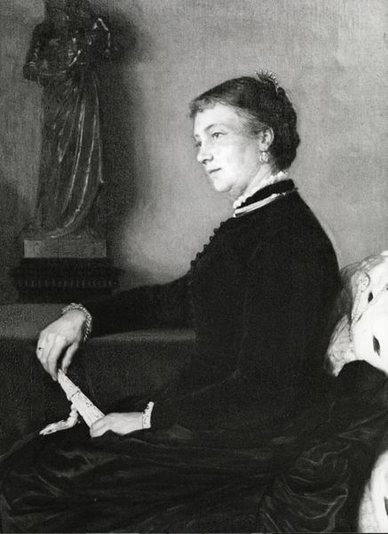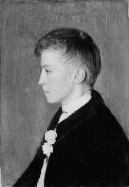Editor: So, this is "Kvindeportræt. London," a portrait by P.A. Schou from 1898, rendered in oil paint. It's quite stark, isn't it? Very direct. What do you make of it? Curator: I find the image deeply compelling because of its directness, as you mentioned. The way the artist uses impasto creates a textured surface, which enriches the face and emphasizes a specific emotional gravity. Notice how her gaze is unyielding, and seemingly meant to engage you directly. Have you considered the symbolism behind her stern composure? Editor: No, I hadn't really. Is it connected to societal expectations of women at the time, perhaps? Curator: Exactly! During the late 19th century, portraiture was often used to convey status, power, or idealized beauty, yet this work defies that expectation by capturing an undeniable naturalism, hinting at introspection. Her clothing is a symbol for belonging, and this can either denote exclusion, or that she belongs. Editor: So it's almost a commentary on the limited roles available to women and the internal struggle it implies? Curator: Precisely. The choice of impasto, applying thick layers of paint, suggests both vulnerability and resilience of those boundaries. It encourages reflection on societal pressures but equally recognizes resistance to social codes. Do you perceive an aspect of subtle rebellion? Editor: Yes, I see that now, in her eyes and in the lack of ornamentation in dress, and in the strength of her unyielding face! Curator: It becomes apparent the symbols in this portrait transcend the merely representational and touch something deeply rooted about societal tension. Editor: This conversation gave me a much greater appreciation for not only this specific work, but also portraits from this era, so, thank you!