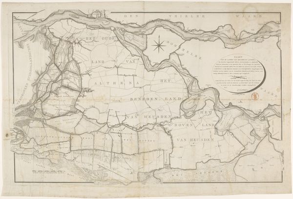 This map of West and Zeeland Flanders was made by Pieter van der Keere around the turn of the 17th century, using engraving. This process involves incising lines into a metal plate, applying ink so that it fills those recessed lines, and then transferring the image to paper with a press. Consider the many hands involved in this type of printmaking. Paper making was a highly skilled job, often using recycled textiles as a raw material. The engraver would have had to be deft with sharp tools, and have great attention to detail. Printing itself demanded strength and finesse. Maps like this one are fascinating because they show a geographical area but also assert control over it. They reflect the growth of trade and the desire for territorial domination, both key ingredients of early capitalism. They could be considered beautiful objects and also tools for resource extraction and colonial projects.