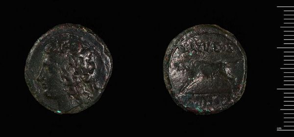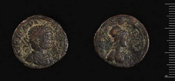 Editor: This is a coin of Constans II, currently housed at the Harvard Art Museums. It looks like a small, unassuming piece of metal. What can you tell me about it? Curator: The coin's material speaks volumes. Bronze, readily available, mass-produced. Notice the wear and tear? It signifies circulation, exchange, labor rewarded. How does that influence your understanding of Constans II’s power? Editor: So, less about the artistry, and more about the context of its production? Curator: Precisely. The coin represents power diffused through the means of production. It reflects labor, trade, and the everyday lives sustained by it. What does that make you think about value? Editor: It shifts my focus. Value isn’t just about the ruler’s image, but the system that coin represents.