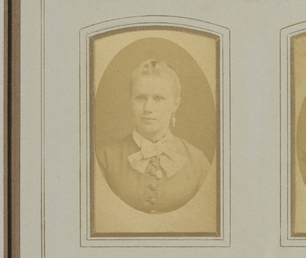 This portrait of a woman with a necklace was created by P. Siewers & Zoon using photographic processes. This small-scale photograph is mounted onto card stock. The sepia tones are due to the chemical reactions of early photographic processes; the image was built up through careful manipulations of light and developing agents, requiring technical skill to control. The woman’s jewelry and attire give us insight into the social norms and economic status of the sitter, while the photographer offers us a glimpse into the burgeoning industry of image production and portraiture. In the 19th century, photography democratized image-making, moving portraiture away from the realm of painting, only for the wealthy. This image speaks to the changing landscape of labor, production, and consumption. Understanding the materials and techniques reveals the history embedded within this seemingly simple portrait, bridging the gap between artistic expression and social documentation.