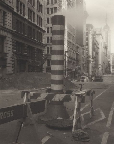 Ilse Bing made this photograph of Wall Street in New York with a camera and photographic paper. The shades of gray, from almost black to light gray, compress the space, exaggerating its height and depth at the same time. It makes you feel as if you’re at the bottom of a very deep well. There’s a tactile quality to this photograph, despite the fact that it’s a photograph – the buildings are so imposing that they become almost sculptural. Look at the building on the right – the repeating pattern of windows fades as it rises. This sense of fading emphasizes the height of the building while also flattening its surface. Like a painting by Mondrian, this photograph makes the familiar strange. It could be a drawing or a painting just as easily as a photograph, and that ambiguity is where its strength lies.
