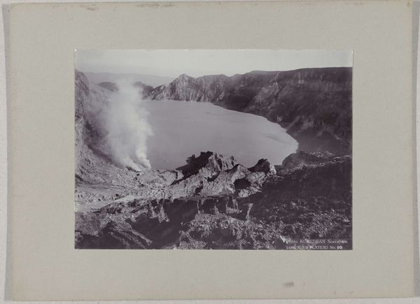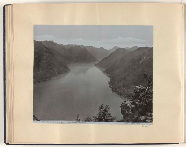 Curator: This is a work titled "Monte Generoso en het Meer van Lugano gezien vanaf de Monte Salvatore," dating back to 1897. It resides here at the Rijksmuseum. Editor: My immediate impression is of tranquility and a somewhat austere beauty. The stark contrasts of light and shadow and muted palette evoke a stillness. Curator: Indeed. What stands out is the composition: the serpentine curves of the lake against the monumental mountains, creates a formal tension between the planar representation of the landscape and the implied depth. The balance is subtly unsettling. Editor: The mountain, which I imagine is Monte Generoso, carries potent symbolic weight in Swiss consciousness. Mountains often represent resilience, endurance, even spiritual ascent, serving as secular cathedrals for a nation proud of its independence. This landscape isn't just scenery; it is imbued with national identity. Curator: Observe the delicate interplay between line and tone. The artist employs hatching and cross-hatching to define form, a conscious act. The deliberate gradations create the atmospheric perspective – which lends the landscape scale. It is less about mimetic representation and more about structural organization. Editor: Yet consider how water, present here as Lake Lugano, almost universally symbolizes the unconscious and emotions. Nestled amidst such powerful land formations, the image takes on added psychological meaning, reflecting the containment or harnessing of our internal states. It also appears quite prominently, it serves almost like a mirror for what is reflected of that spiritual ascent you describe. Curator: An interesting parallel. One can interpret the light in this fashion: As light emanates downward towards the unconscious, so is form shaped upward into that consciousness of the sublime in the form of mountains. Editor: This is a land steeped in a collective understanding of landscape; a landscape which shapes individual and national character. The mirroring quality of the light is, literally and figuratively, a form of reflection. I now see it’s a place to self-reflect against the magnitude of nature. Curator: Through the lens of formal analysis, we’ve discerned a dynamic relationship between the artifice of technique and the sublimity of subject matter. It really displays form shaping cultural interpretation. Editor: Precisely. Symbols speak in varied, almost ancestral voices. These old landscapes provide context, they ground, and inform identity across time.