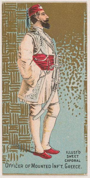 This is a chromolithograph, made around 1888 by the Kinney Tobacco Company as a promotional item for Sweet Caporal Cigarettes. The image is a small, mass-produced card depicting a French gentleman of the 16th century. What's interesting is the combination of high-end subject matter and low-end production. Chromolithography was a relatively inexpensive printing technique involving the use of multiple lithographic stones, one for each color. The process allowed for colorful and detailed images to be produced quickly and in large quantities, making them ideal for advertising and mass consumption. We see a figure that represents luxury and status: the elaborate clothing, the sword, the confident pose. Yet this image circulated as a giveaway item, a small token enclosed with a pack of cigarettes. The very ease with which it could be reproduced democratized this image of wealth and nobility, turning it into an everyday object. It's a fascinating collision of worlds, where aristocracy meets industrial capitalism.