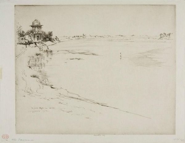 Curator: Frank Short's etching, "Langston Mill", captures a stark beauty. It's held in the Harvard Art Museums. Editor: My goodness, there's such quietness in this! It feels like a whisper of a place, all pale and still. Curator: Short was a master of aquatint, an etching technique allowing subtle gradations of tone, so this softness is quite intentional. The subject is just a mill, but through his technique, it becomes something more. Editor: More like a memory, or a ghost of industry. The mill isn't romanticized; it feels weathered. Still, there’s a stark kind of beauty. Curator: The art market in his time valued such scenes, reflecting a broader interest in rural landscapes and pre-industrial subjects. Editor: I suppose so. But the way he’s stripped it down, the etching, it's almost like he's asking, what remains when the industry is gone? It asks questions, doesn't it? Curator: I agree! It's a compelling piece, prompting us to think about the passing of time and its effect on labor and the landscape. Editor: Well, I know this mill is something I won't soon forget. There is a subtle beauty about the simple scene.