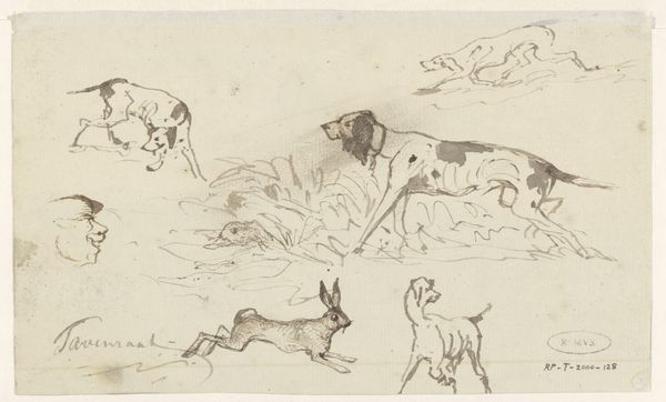 This is Johannes Tavenraat's drawing "Hunter and Hounds" now at the Rijksmuseum. The images of the hunter and his dogs is an intriguing window into the social and cultural norms surrounding hunting, a favored pastime of the elite class during the 19th century. The drawing portrays the dynamics between humans and animals, reflecting societal attitudes toward nature and control. It gives rise to questions about power, privilege, and the relationship between humans and the natural world. With careful strokes and an emotional authenticity, Tavenraat captures the vitality of the hounds. Is this just a depiction of a recreational hunting scene, or is it a more complex visual narrative about the relationship between people, animals, and the environment? Consider the role of hunting in shaping social identities and hierarchies, and question what unspoken stories are contained within this drawing.