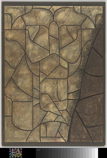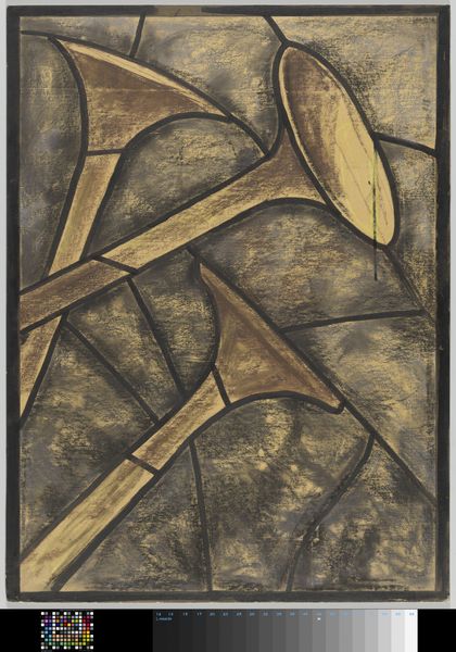 Richard Nicolaüs Roland Holst created this design for a window in the North transept of Utrecht Cathedral using chalk and graphite. The somber tones, primarily browns and grays, might initially evoke a sense of solemnity, but the interplay of geometric forms offers a dynamic visual experience. The composition is structured around abstract shapes reminiscent of trumpets, distributed across the picture plane. Holst employs line to divide the space into irregular sections, almost like a stained-glass window waiting to be filled with color. This technique creates a tension between representation and abstraction, questioning the viewer’s perception. The use of line and form in this design can be seen as a commentary on the very nature of representation itself. Is it possible to capture the essence of an object or idea through purely abstract means? Holst’s design challenges us to consider the limits and possibilities inherent in the act of artistic creation.