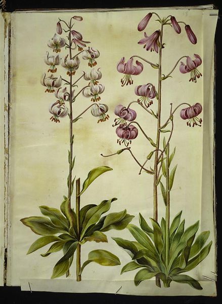 Hans Simon Holtzbecker made this botanical study of Gladiolus Communis in watercolor on paper around the mid-17th century. Holtzbecker's precise rendering speaks to the rise of empirical observation and documentation during the scientific revolution. Botanical illustration served a vital purpose, aiding in the identification and classification of plant species for medicinal and economic purposes. This drawing may have been commissioned by a wealthy patron with interests in botany and horticulture, reflecting the growing culture of collecting and studying natural specimens. In Northern Europe at this time, the detailed depiction of nature also carried religious associations, seen as a way to celebrate God’s creation. To understand the broader context of this work, we might consult the artist’s other studies, or the inventory of a royal collection. Examining the social and institutional setting helps us appreciate how art and science intertwined in Holtzbecker's time.
