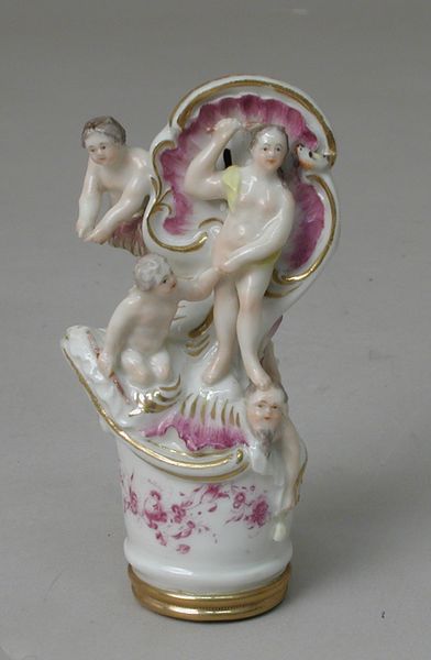 This is a porcelain sculpture representing Painting, made by Vauxhall around the mid-18th century. This era saw the rise of decorative arts, often reflecting societal ideals. The cherubic figure, draped in a pink sash, embodies the romanticized view of artistic inspiration as youthful, innocent, and divinely touched. Yet, this representation also subtly reinforces the exclusion of women from the professional art world, portraying creativity as an almost infantile, and implicitly masculine, trait. The delicate porcelain medium itself speaks to the era’s fascination with refinement and luxury, yet it also prompts questions about labor and access. Consider the hands that shaped this piece – anonymous artisans who may not have shared in the aristocratic visions it embodies. This sculpture then becomes a poignant reminder of the complex intersections of creativity, class, and gender in the 18th century, inviting us to reflect on whose stories are told, and whose are left unseen.