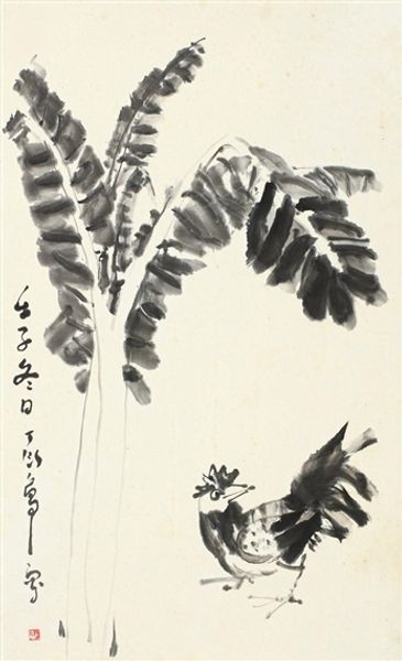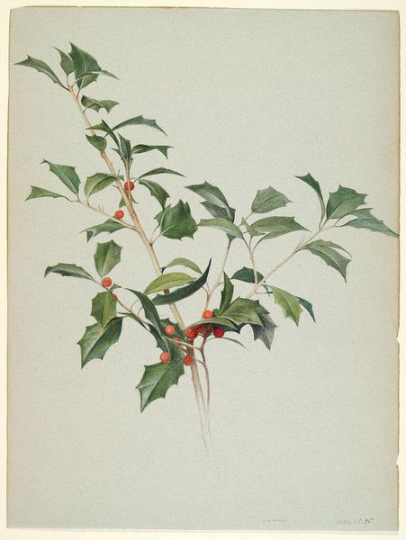 Curator: Here we have "Sonnenblume," or "Sunflower" in English, a watercolor and oil painting on paper, created circa 1924 by Karl Wiener. Editor: It looks so delicate! Like a pressed flower found between the pages of an old book, all subtle shades of green and just that single burst of bright yellow. There's something almost melancholy about it. Curator: Yes, the sunflower, with its singular upward gaze following the sun, can symbolize longing and fidelity. Wiener's choice of watercolor lends a softness, an ephemeral quality that enhances that sense of longing, perhaps a connection to simpler times. Sunflowers also have deep cultural resonance. For the Incas, for example, they represented the sun god himself. Editor: That one yellow head seems almost too heavy for its stalk; it's about to droop, just at the top of its glory. I mean, we mostly associate sunflowers with sunny optimism, Van Gogh's fields ablaze with them... but this feels… different. More vulnerable. Curator: Indeed, it diverges significantly. Notice how Wiener used both watercolor and oil on paper; such delicate balance to capture the fleeting nature of life, with that sunflower standing against the background as a figure against ground. He must be a very curious man. Editor: I bet. I find myself thinking about impermanence, not in a scary way, but more as a gentle reminder that everything has its season. You know? Curator: Precisely. The bloom in its prime, on the cusp of fading; a reminder of life’s cyclical rhythms, a core component of numerous spiritual and philosophical traditions across civilizations, like that of the Wheel of Time concept within Buddhism, reminding one to accept it as change as change comes. Editor: So, it's less about sunny optimism and more about the poignant beauty of… letting go? Curator: One could argue that point of view, yes. Wiener presents not just the flower, but perhaps the universal symbolism of a lifecycle. Editor: Okay, I like that, it's given me a new perspective about botanical art that is definitely going to stick around. Thank you. Curator: My pleasure. It has certainly enriched my reading of the piece as well.