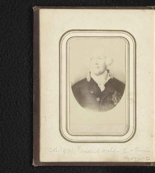 Editor: Here we have an interesting photograph, a gelatin silver print dating back to sometime between 1860 and 1880. It's a portrait of Ferdinand von Beust. It’s got a slightly austere mood to it, a formal almost confrontational pose. How do you interpret this work? Curator: Well, this image, like many portraits of the period, is about power and social identity. The stiff pose, the formal attire—they're not just reflections of fashion. Consider Beust's biography, he was a Saxon and later Austro-Hungarian statesman during a period of intense nationalism and shifting European power dynamics. What message do you think he intended to convey through this image? Editor: Confidence and authority? Maybe even a warning? Curator: Precisely. Photography in the 19th century was often used to project a carefully constructed image of the self, especially among those in positions of power. This portrait is less about capturing a likeness and more about cementing a certain image in the collective consciousness, one that reinforced existing power structures. And, of course, think about who had access to photography and who didn't. Editor: That makes a lot of sense. I was focused on the visual, but you've helped me see how portraits like this are also deeply intertwined with political and social power. Curator: Absolutely. Recognizing these historical contexts allows us to understand how artworks participate in broader cultural conversations around identity and control. These aren't passive images; they are active participants. Editor: I will definitely be thinking about that more. Thanks. Curator: My pleasure.
