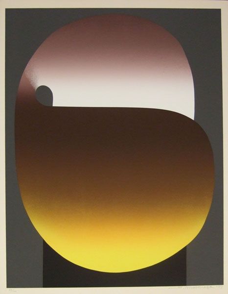 Curator: We’re looking at Edward Avedisian’s "Beach Ball" from 1960. It’s done in watercolor. Editor: It has a remarkably calm affect, really muted tones, the circle feels quite solid. It gives me a sense of pastel chalk dust and sunshine. Curator: It’s interesting you say solid, because Avedisian’s known for color field painting, where color seems to float. This circle almost seems to resist that reading with its geometric division. There's a quietness here; a deliberate stripping away, almost an archetypal image of a ball. Editor: The medium contributes greatly to that floating impression, though. Imagine that same design in acrylic, the visual weight changes immediately! The watercolor reads more ethereal, almost textile-like in the variations within each wash of color. Did he build the colors by layering washes, I wonder? It seems key to the feeling. Curator: Exactly! Think of the symbolic implications of a beach ball, particularly in 1960. Is it merely about form, color? Or is Avedisian commenting on leisure, mass production of toys, summer, and a kind of playful escape in the context of the cold war? The colors themselves have cultural weight. Editor: I'm more concerned with the artist's physical labor, frankly, like how those slightly irregular lines are far more telling than perfect digitally rendered bands. The uneven distribution of pigment tells its own story of process, and that makes the visual experience warmer. Curator: I think the dialogue between planned geometry and process is the key, a very modernist dialogue indeed. Editor: For me, it's more that it presents a case study in how something very simple materially – watercolour, paper, masking techniques perhaps – can produce complexity on closer observation. A compelling material engagement.