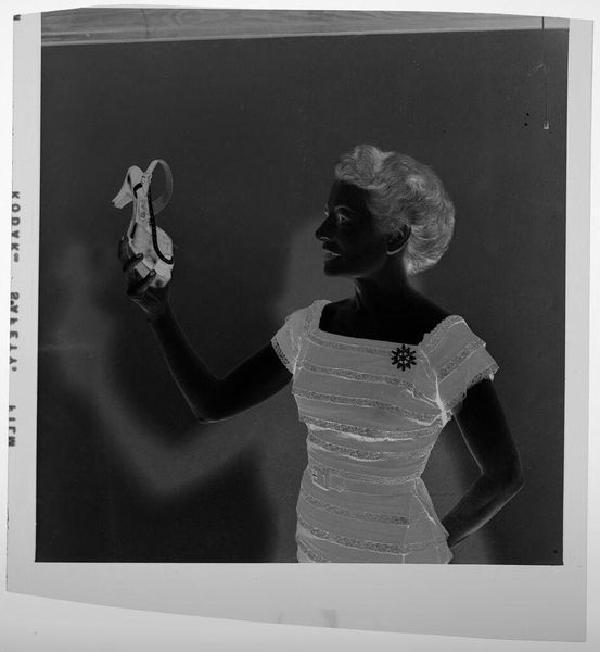 This photograph, made by Paul Gittings, presents a woman in a lacy dress seated in front of a window. Photographs like this one were made using darkroom techniques, and in this case, the use of the negative gives the image a rather ghostly quality. Note how the patterns of the blinds behind the sitter, and the vase to her left, set up a dialogue with the filigree of her dress. Lace is a textile that comes into being through interlacing threads, a slow, painstaking process originally done by hand. By the time of this photograph, the industrial revolution had transformed lace-making, allowing for more affordable, mass-produced patterns. What kind of labor was involved in making that dress? And what kind of leisure is being represented in this image? The photographer plays with the contrast of shadows, transforming the ordinary into something magical. The image asks us to reflect on the relationship between labor, class, and representation in photographic portraiture.