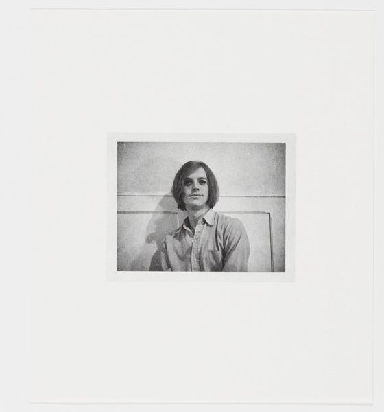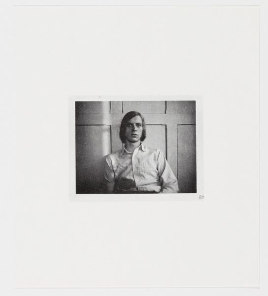 Curator: Let's explore Christian Lindow's piece, "I believe in my own puberty," currently held at the Harvard Art Museums. Editor: The first thing that strikes me is the youthful uncertainty captured in the subject's gaze. It feels very vulnerable. Curator: Absolutely. And the material aspect—the photographic print itself—contributes to that feeling. The grayscale suggests a bygone era, but it’s also so immediate, like a captured moment, a social artifact. Editor: Yes, and the symbolic weight of puberty... it’s a time of immense change, not just physically but psychologically. The subject’s androgynous presentation blurs conventional boundaries. Curator: Interesting, because the means of production in photography are also about challenging boundaries—mass production versus unique artistic expression. The framing further emphasizes the artist's, and our, view. Editor: Ultimately, it’s a portrait of becoming, the symbol of a fleeting, awkward, and beautiful moment in the human experience. Curator: Indeed, the materiality and the subject's own transition both invite us to consider the social construction of identity. Editor: A compelling image that certainly resonates even now. Curator: Definitely food for thought about the process and identity formation.