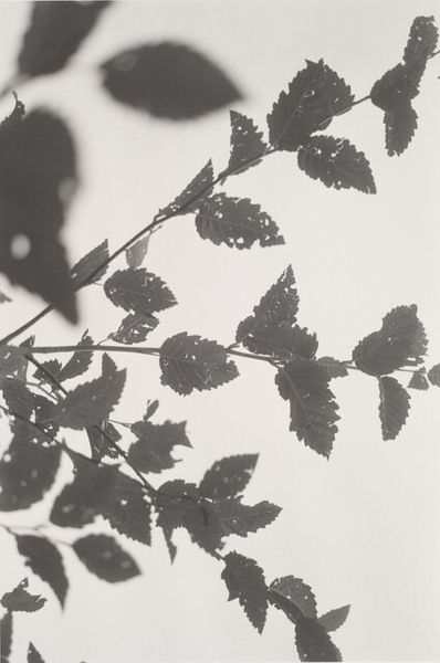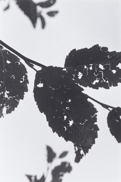 Curator: What a delicately rendered scene. This is Robert Adams's "Neahkahnie Mountain, Oregon" from 2004, a gelatin-silver print. Editor: My first impression is fragility. The stark monochrome and the almost skeletal leaves... it feels incredibly vulnerable. Curator: I think the gelatin-silver process emphasizes that feeling. Adams was known for his focus on the environment and how industry and humans shape it. Considering gelatin, derived from animal collagen, plays a key role, it reminds us of the complex interactions of living beings used to represent it. Editor: Right, and Oregon has such a fraught environmental history, particularly around logging and resource extraction. Seeing this level of detail, it makes me think about accessibility, about who has the privilege to appreciate this landscape, given the history of exclusion and exploitation. Curator: He often worked in series, which allows viewers to consider context deeply through repetitive observation. Looking at the process behind gelatin-silver prints, where light essentially etches the image onto the paper, it feels incredibly analogous to natural weathering. Editor: I appreciate how you’ve articulated that weathering effect—it definitely resonates. But also, those holes in the leaves, they make me think about ecological damage, about invisible forces eating away at the natural world, especially within a Capitalocene reading. Are they wormholes, pollution damage, or the simple entropy? Curator: Yes, that degradation can speak to that damage. It gives way to discussions on our environmental interactions by bringing those themes to the surface and reminding the consumer that mass manufacture still leads back to a primary material that has been cultivated, exploited and consumed to bring the consumer pleasure or functionality. Editor: Indeed, seeing art this way demands critical engagement with our own consumptive tendencies, and it challenges us to question our relationship to the environment. It’s a sober assessment but valuable lens through which to appreciate not only nature's elegance but the precarious conditions it’s in. Curator: Precisely. It shifts us beyond sentimentality toward action. Editor: Well, let’s hope it instills just that, now doesn’t it.