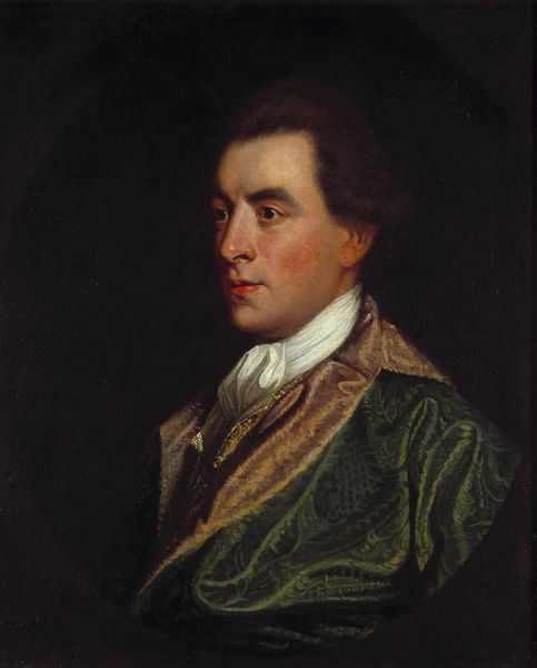 This is a portrait of John Bradburne by Thomas Lawrence, made with oil paints on canvas. Oil paint has a unique capacity to capture subtle gradations of light and shadow. Here, Lawrence uses it to create a soft, almost luminous effect, particularly noticeable in the subject's face and neckcloth. The application of paint is also quite telling. Notice the visible brushstrokes, particularly in the background and clothing. This shows a move away from the highly polished surfaces of earlier portraiture, toward a more expressive, immediate style. Such painterly effects were highly valued in Lawrence's time, prized as evidence of the artist's skill and individual touch. The very facture of the painting becomes part of its meaning, an index of the artist's labor. The painting also reminds us that portraiture in this era was a luxury, affordable only to the wealthy. Ultimately, understanding the materials and making of this painting gives us a deeper appreciation of its cultural and social significance.