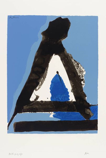 Editor: This is Mario Micossi's "Souvenir of Chicago," a print from 1967. I'm struck by the stark contrast of the emerald spire against the somber structure below. What do you see in this piece? Curator: I see a meditation on urban space and power dynamics. The emerald spire could represent aspirations, perhaps even a distorted view of progress, overshadowing the darker realities of the city implied by the stark, shadowed structure. Editor: So, the spire isn't just a building, it's a symbol? Curator: Precisely! Consider how urban development often prioritizes aesthetics and aspiration over the lived experiences of marginalized communities. Micossi might be inviting us to question whose perspectives are being elevated and whose are being obscured. Editor: That gives me a lot to think about. I didn't initially consider the social commentary. Curator: Art often holds a mirror to society, reflecting its complexities. It's about engaging with those reflections, no matter how challenging they might be.
