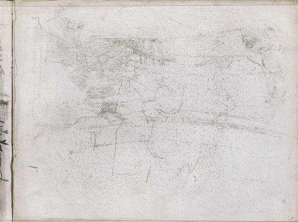 This offset of a chalk drawing on page 12 was made by Isaac Israels, but who knows when? It's all about the process here, this delicate transfer. It looks like Israels was interested in how an image can be both there and not there at the same time, like a ghost. I love how you can see the texture of the paper coming through the chalk. It's like the paper itself is part of the drawing, as if it is breathing, or maybe disintegrating. Look closely at the top right corner, it's darker and more dense than other parts of the image, almost like a shadow. This offset reminds me of Cy Twombly, another artist who loved to play with erasure and the beauty of impermanence. Ultimately, this piece is an invitation to slow down and really *see* what's in front of you. To embrace the beauty of imperfection, and to recognize that art is just as much about the process as it is about the final product.