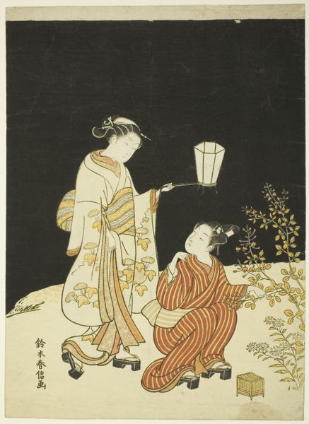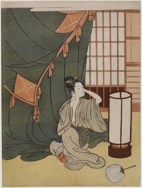 Suzuki Harunobu created this woodblock print, “Woman Washing Her Hands Before Entering a Shrine,” around 1760. The print has muted, earthy colors and clean lines that draw us into a serene moment of ritual purification. We see a woman meticulously drying her hands. Beside her, a young boy looks up, holding a small flowering branch, ready to enter the sacred space. The composition is built on a subtle contrast between the natural and the constructed. The organic forms of the trees in the background offset the geometric lines of the stone water basin. This division reflects a broader cultural interest in the interplay between nature and artifice. The meticulous detail in the woman’s kimono, juxtaposed with the stark geometry of the basin, creates a visual harmony that speaks to the refined aesthetics of the Edo period. Harunobu’s print invites us to contemplate the symbolic act of purification and to reflect on how these simple yet profound gestures resonate with the larger structures of belief.