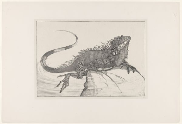 Curator: Félix Hilaire Buhot’s 1883 print, “Two Views of a Bronze Inkwell in the Shape of a Toad,” strikes a rather curious tone. Editor: It certainly does. My initial impression is one of playful melancholy. It's like looking at a cherished oddity someone sketched on a cloudy afternoon. There's an intimacy to it, almost like a stolen glance at a private fascination. Curator: The print’s power lies in its capacity to invite viewers into a very specific, intimate world. Bronze toads often carried significant cultural symbolism, particularly linked to protection, transformation, and hidden knowledge, right? They appear in myths across different cultures. Editor: Absolutely. They squat there, seemingly benign, yet holding within them a transformative power, a latent potential for alchemy. I wonder if Buhot felt a kinship with the creature? He presents two angles – is he seeking a fuller understanding of this enigmatic object, or perhaps of himself? Curator: Indeed. There is something so very careful about his representation – note the fine lines achieved through etching. I feel like he's asking, "What secrets does this humble creature hold?" The amphibian and its associations echo in countless folk tales. Editor: You're right, that’s so much of it, isn't it? This potent tension between the mundane and the magical. It is both an observation of a thing and an invitation to journey into the symbolic unknown. Curator: Precisely. The Impressionistic touches soften the edges, giving the metal form an almost dreamlike quality, yet his precision in depicting the texture creates tension. Editor: Looking at the texture and the pose…it almost breathes, doesn’t it? Despite being metal, there’s life hinted at. Curator: An enduring puzzle encapsulated on paper – one that holds a wealth of history, symbolism and personal reflections if one just pauses long enough to observe. Editor: That's it, exactly. It's a microcosm of meaning, an everyday marvel captured with surprising poignancy.