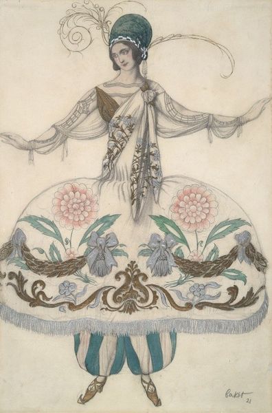 James Ensor made this drawing, Vuurwerkboeket, with colored pencils, and you can see his hand in it, I think. It's all about the artist's mark, the process of drawing. Looking at this figure, you can see the red, yellow and blue lines are layered to give the impression of color and form, but the paper is left bare, so that the drawing remains ethereal. The colored pencil has a wonderful texture; look at the bottom of the dress; you can really see the marks, like the fan of a peacock's tail. In the figure’s face there is a gentle expression; a quiet optimism, like a silent movie star. And then, the artist has signed it! A reminder that the artist leaves his mark upon the world. Vuurwerkboeket reminds me of the costume designs of Oskar Schlemmer, perhaps there was an exchange of ideas? But ultimately, the meaning of this piece is open to interpretation. It leaves much to the imagination.