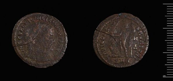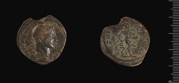 Editor: So, this is a coin, an AE2 of Constantius Gallus, struck in Nicomedia. It’s small, and worn, but still carries these potent, almost ghostly images. What can you tell me about this little survivor? Curator: It whispers stories, doesn't it? Imagine the hands it passed through, the taxes paid, the daily life it touched. The figure on the reverse, likely a Roman soldier spearing a fallen foe, speaks volumes about the empire's constant state of war and its visual language of power. Doesn’t it make you wonder what he was fighting for? Editor: Definitely. It feels almost like holding a piece of a forgotten world. The wear on it makes me think it was a very valuable object. Curator: Valuable, yes, but also vulnerable. A tiny, portable billboard of power, constantly at risk of being lost or melted down. It's a paradox, isn't it? Something so small holding so much weight. Editor: I never thought about it that way. A micro-monument, almost! Thanks for the insight. Curator: My pleasure! Art is full of surprises.