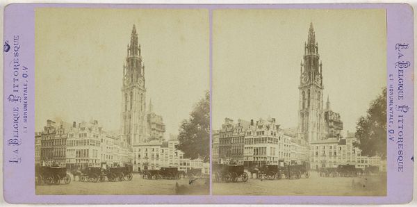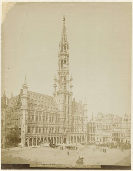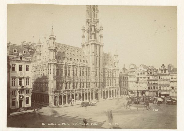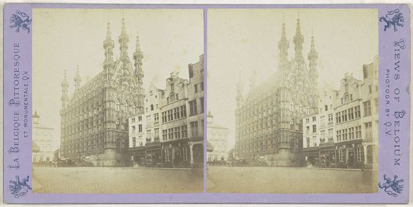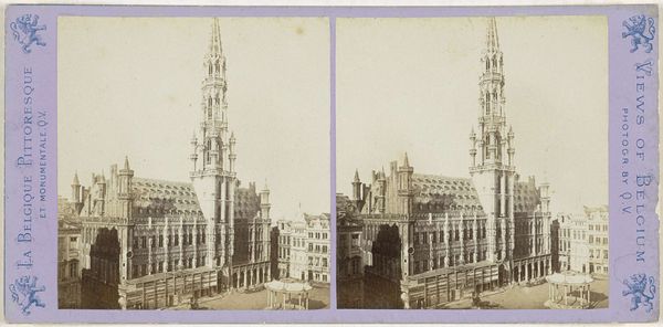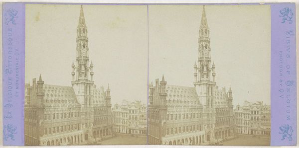 This stereoscopic photograph of the Brussels Town Hall was made by L. Fizanne in Paris, likely in the mid-19th century. Stereoscopic photographs like this one were a popular form of entertainment and documentation during the Victorian era. This particular image presents the viewer with an idealized vision of civic pride through its depiction of the Hôtel de Ville. The carefully composed shot emphasizes the grandeur and architectural detail of the building, while the stereoscopic effect would have enhanced the sense of realism for viewers. In the 19th century, the rise of photography coincided with the growth of cities and the consolidation of national identities. Architectural photography played a role in shaping public perceptions of urban spaces, and this image would have contributed to Brussels' image as a modern, well-governed capital city. To understand this photograph more fully, we might turn to urban planning documents or newspaper articles of the period. Such sources can tell us how this building and its image functioned within the wider social and institutional structures of its time.