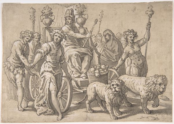 Editor: This print, "Engineers" by Antoinette Bouzonnet-Stella, showcases a procession of figures and horses. It looks like an ancient scene, but also seems to be celebrating labor and ingenuity. What do you see in this piece that I might be missing? Curator: The symbols of labor are quite striking, aren't they? Consider the procession itself. Processions often carry immense symbolic weight, representing power, conquest, or even religious devotion. Notice how the "engineers" are placed within this framework. Editor: So, is it suggesting that their skills and trades are something to be celebrated and valued? Curator: Precisely. The tools they carry aren't just implements; they're emblems of human capability. Also, observe the classical style. It's a visual link to a past where similar skills built empires. Does that connection change how you view the print now? Editor: Definitely, seeing it as a statement about the lasting importance of skill across time is very interesting.