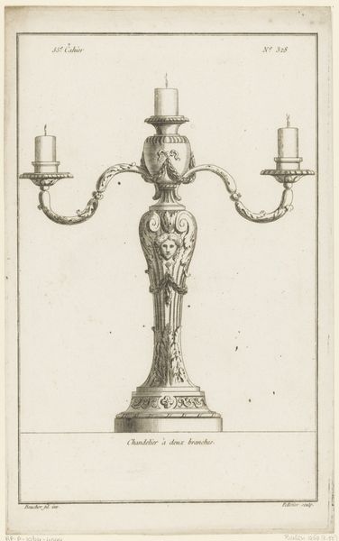 Curator: This is a drawing titled "Doopvont", which translates to "Baptismal Font". The print, an engraving on paper, was created anonymously sometime between 1575 and 1629. It resides here at the Rijksmuseum. Editor: Wow, there's something so incredibly precise and ornamental about this, right? It almost feels cold and calculated, like a blueprint from an alien civilization obsessed with elaborate geometry. But in a good way! Curator: The precision aligns with the Baroque style flourishing at the time. The period heavily emphasized grandeur and ornate detail in religious objects as a symbol of power. The historical context also suggests considering the Counter-Reformation. Baptism gained significance in distinguishing Catholics from emerging Protestant faiths. So, in essence, such ornate design served religious and socio-political functions. Editor: Right! A statement piece, basically. Looking at this intricate network of lines and the somewhat stern cherubs holding up the basin, I can't help but think about control. Both spiritual and societal, you know? Curator: Precisely. The cherubs, while seemingly innocent, represent a religious authority carefully overseeing the sacred act. The geometry also enforces an order and regulation of space and ritual, reminding those being baptized, or observing, of religious control during an age defined by reformations and inquisitions. Editor: See, this piece makes me think of being caught between tradition and transformation. The weight of ritual and those gorgeous details! This feels timeless, yet undeniably rooted in its specific cultural moment. So what does this mean for baptism in contemporary culture? How does the socio-political impact the experience of ritual today? It’s complicated…but incredibly engaging, even centuries later! Curator: Exactly, and that’s the key takeaway here, it is more than an attractive baptismal font from the late 16th and early 17th centuries. It presents social complexities that linger today. Editor: I guess you could say that we ended up diving deep.