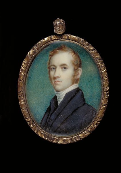 Henry Benbridge painted this “Portrait of a Gentleman” as a miniature, likely in the late 18th century. Consider the context: Benbridge, though American, gained his artistic education in Europe. As an artist, he navigated a world steeped in tradition, where portraiture served to solidify social standing, and in this case, celebrate male identity. But what does it mean to be a gentleman in the late 1700s? This man is depicted with a soft gaze, powdered wig, and refined attire, which speaks of status and belonging to the elite. The miniature format suggests intimacy, a keepsake perhaps exchanged between loved ones or a token of admiration. The red gems that adorn its frame hint at wealth and the delicate craftsmanship. Consider how Benbridge balances adherence to societal norms with the emotional depth he brings to the portrait. The gentleman’s expression evokes a sense of introspection, subtly challenging the stoic representations of masculinity typical of the era. This piece offers a window into the complexities of identity during a time of great social and political change.