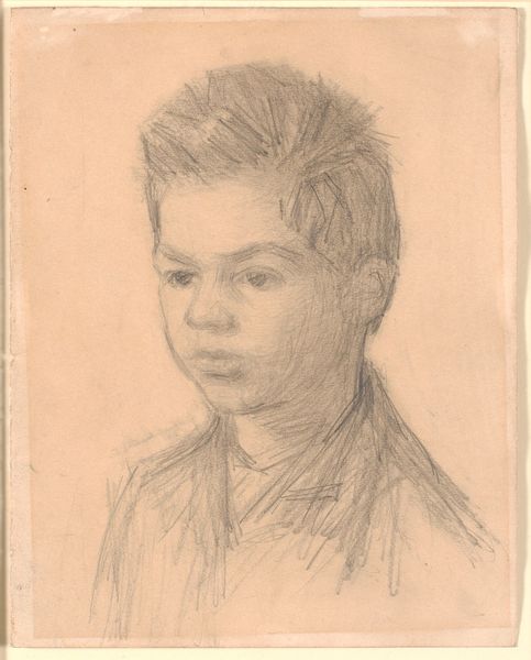Editor: We're looking at "Gérard, masque," a pencil drawing by Henri Matisse, created around 1945 or 46. There's a quietness to it, a sort of gentle melancholy. What do you make of the face, and the ways it resonates beyond just being a portrait? Curator: It’s compelling how Matisse evokes a mask-like quality, even though this is clearly a human face. Think about what a mask traditionally represents. It conceals, but it also reveals something – perhaps a role, a hidden emotion, or even a spirit. What is being brought forth, or held back, do you think? Editor: Hmm, held back. The eyes seem averted, guarded. Maybe it’s the historical context too. It was drawn right after World War II, maybe reflecting a certain… weariness? Curator: Precisely! Post-war Europe was grappling with profound questions of identity and the human condition. Notice how Matisse uses shading, almost like shadows playing on the face. It’s not just about surface likeness. The mask isn't a physical object, but an emotional one. In some cultures, masks help navigate between the physical and spiritual worlds. Could Matisse be exploring a similar boundary? Editor: That's a powerful idea. So the apparent simplicity, the pared-down style, is almost deceptive? Curator: Absolutely. Simplicity in art can be profoundly evocative. It strips away the superficial, allowing deeper symbolic resonances to emerge. By minimizing detail, Matisse encourages us to project our own experiences and interpretations onto Gérard’s face. It asks us what “face” are we, each of us, wearing to greet the world. Editor: I see it differently now. It's less about sadness and more about quiet strength and reflection. Thanks for showing me how to look deeper. Curator: My pleasure. Discovering those hidden layers is the great joy of exploring art.