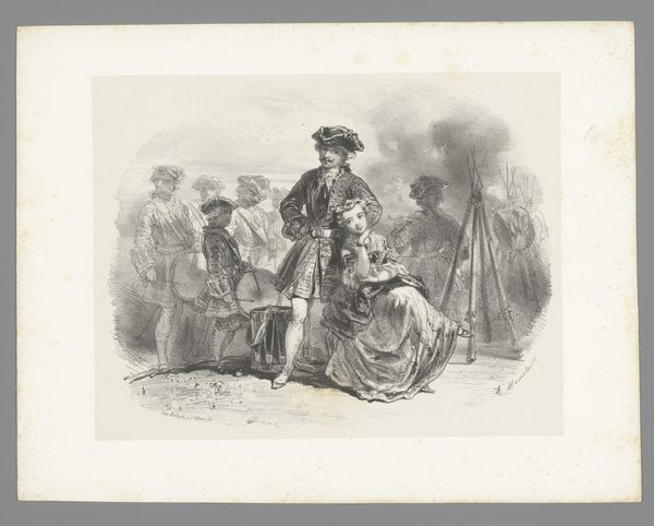 Curator: Here we have "Dancing Couples with a Duo of String Players" by Willem Linnig the Younger, likely created between 1852 and 1890. The medium is pen and ink on paper. Editor: It has this immediate energy. It feels fleeting, like a snapshot of a lively gathering caught on paper. The scratchy linework makes it raw. Curator: Absolutely, the rapid strokes suggest movement and spontaneity. Linnig comes from a family deeply entrenched in the artistic fabric of 19th-century Antwerp. Looking closely at the process, the hatching, you can see the hand of the artist so directly. What sort of labor goes into evoking leisure like this? Editor: It certainly reflects a particular societal bubble of the time. These gatherings were spaces for socializing, negotiating social status, but also often spaces of constraint and the performance of rigid gender roles. The dancers and musicians aren't simply expressing joy; they are performing a ritual loaded with cultural meaning and limitations. What social stories are hidden within the dance itself, within those very gestures? Curator: Well, the material execution reveals Linnig's mastery and understanding of the marketplace for art at that time, and reveals something about the access he might have had to education and materials. He clearly caters to the tastes of a particular consumer group within this historical period, a middle class with growing wealth and the leisure to enjoy these scenes. Editor: Exactly. He portrays a kind of fabricated intimacy. The romantic era's obsession with emotion hides power dynamics, you see. But the act of capturing it becomes interesting itself when considering the hierarchies it naturally reifies. It asks the viewer who and how we celebrate. And what about those he doesn't celebrate. Curator: He's choosing to document a moment steeped in a certain aesthetic and cultural privilege that the labor itself both acknowledges and somewhat attempts to challenge by revealing his own labor. Editor: It's a complex dance on paper that reveals more than a few different tensions. It's also not separate from social tension, and by documenting the era he's complicit in the history. Curator: So, through Linnig's pen and ink, we witness not just a dance, but a confluence of artistry, social structure, and, potentially, the underpinnings of historical memory. Editor: Ultimately, viewing this pen-and-ink image invites contemplation of a romantic celebration and all that isn't contained by the image. It causes me to challenge whom and what we value culturally even today.