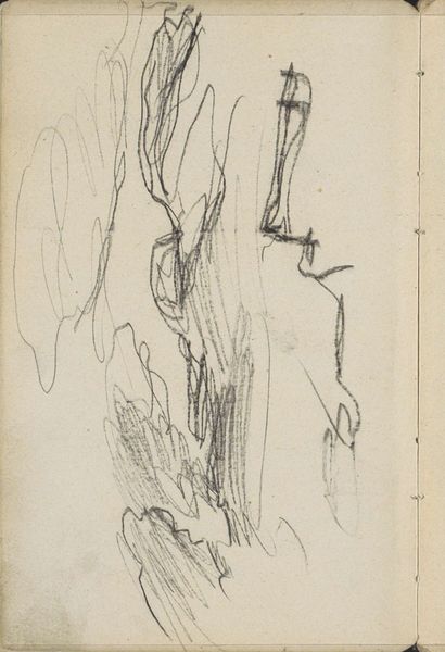 This is George Hendrik Breitner's sketch, "Studie, mogelijk van een wolkenlucht," housed here at the Rijksmuseum. Its muted tones and delicate lines capture a fleeting, atmospheric moment. Observe how Breitner uses line to create a sense of movement and form. The strokes vary in weight and direction, suggesting the shifting, ephemeral nature of clouds. These lines converge and diverge, creating a dynamic composition that invites the eye to wander across the surface. There is a tension between representation and abstraction. Breitner's approach reflects the broader artistic concerns of his time, when artists were increasingly interested in capturing subjective experience rather than objective reality. This sketch can be seen as an exploration of perception and the power of suggestion. It is an invitation to contemplate the interplay between form and content, representation and abstraction, and the ever-changing nature of our experience of the world.