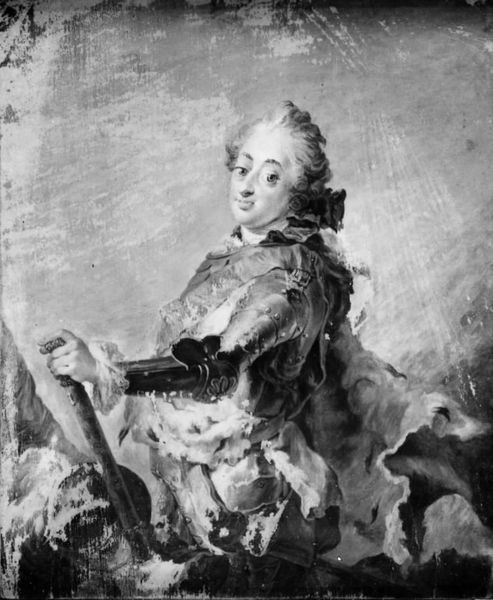 Curator: Here we have Frans van Mieris the Elder's "Man Playing the Theorbo (self-portrait?)," dating from 1676. It's a stunning example of Dutch Golden Age portraiture. Editor: My first thought is the almost unsettling direct gaze, that slight smirk. It definitely holds my attention. The lighting is remarkable too. Curator: Indeed. Notice the detail in the clothing. Consider the textile production, the tailoring, the clear markers of wealth. This wasn't just painting, it was a representation of social status deeply embedded in material culture. Who made the clothing, where did the fabrics come from, what were the labour conditions? Editor: But observe how van Mieris uses the light to define form. The fall of light on the silk sleeves, the highlights that create volume. He's not just rendering material, but actively shaping space and directing our eye. The slightly asymmetric composition also lends dynamism to the piece. Curator: And what about the theorbo itself? Music-making was a social practice. Was he playing for others, or composing alone? Who was his audience, what kind of musical community sustained his craft? Editor: From a purely aesthetic standpoint, the theorbo acts as a counterpoint to the figure's pose. The vertical lines of the instrument, along with the lines in the landscape behind, give a sense of depth, setting off the sitter’s turned gaze and pose. Curator: It is also tempting to interpret the gaze within the Dutch Golden Age's thriving market for art. Mieris's self-promotion, via skilled, laborious self-representation, shows understanding of the art world's material and commercial side. Editor: For me, it's about the artist engaging in a kind of visual dialogue. He uses the language of Baroque art – light, composition, dynamic pose – to communicate with the viewer on an intimate, yet somehow detached level. It transcends its time. Curator: So, perhaps a study in self-fashioning intertwined with the economic realities of being a 17th-century artist? Editor: Yes. In either case, this painting offers a unique look into artistic craftsmanship as a form of visual and material storytelling.