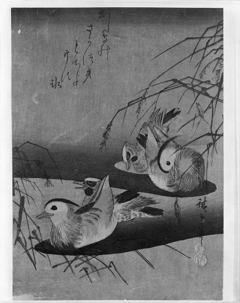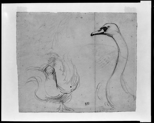 Curator: Welcome. Let's turn our attention to this lovely drawing attributed to the Hokusai School, dating from 1800 to 1868. It's entitled "Pekingese" and rendered in ink. What’s your first take? Editor: It reminds me of a grumpy professor perched on a twig. A very stylish professor, mind you. But that face! I wouldn't want to cross it. The contrast between that regal bearing and the delicate flowers is pure comedy gold. Curator: An intriguing interpretation. Structurally, the artist employs a delicate balance of line and wash to construct the animal’s form, using darker inks to define the outlines, while lighter washes create the illusion of fur and depth. This juxtaposition creates an intriguing textural dialogue. Editor: Textural dialogue – I like that! For me, the charm lies in how utterly unidealized the dog is. It feels so real, so particular, with those slightly crossed eyes and that ridiculous haircut. It is like they captured its personality with such affection that I find funny. Curator: Affection, perhaps, though one could also argue that the work serves as a semiotic marker of status, with the Pekingese dog being a symbol of wealth and privilege during that period in certain cultures. The artist has positioned the figure centrally, reinforcing the dominance of the subject within the composition. Editor: Oh, I see what you mean, a symbol floating amidst chrysanthemums. But, still, the dog seems so un-self-conscious! All that fluffy chaos—it's beautiful and a bit daft. I just love it! Curator: Your perspective introduces an interesting layer of reception, prompting a re-evaluation of the formal elements at play. Editor: Well, there you go. Fluff and rigor, hand in paw. What a splendid little dog—symbol or no symbol. I shall name it Professor Woofers! Curator: A suitably eccentric moniker for such a distinctive representation, indeed.